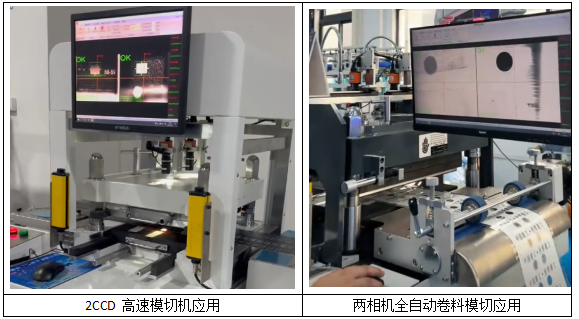 MasterAlign-2C双相机自对位在工业自动化中应用非常广泛,机构工艺简单易实现,软件操作简单容易上手。此案例中用户的模切机使用MasterAlign软件进行高精度的对位生产应用,在对位时候其精度可达±0.02mm,而对位时间在0.4s内完成。