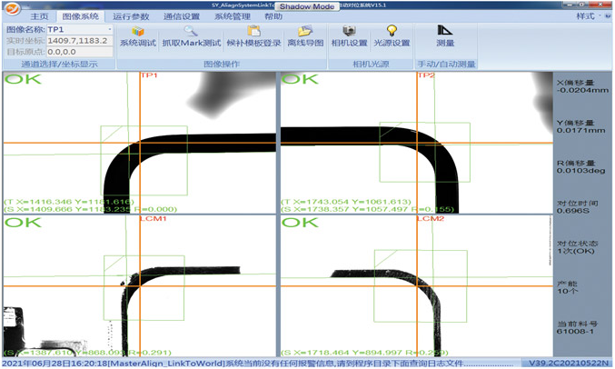 MasterAlign-4C四相机映射对位。此案例中使用软件进行高精度的对位应用,在进行高精度加工应用,其对位精度可达到±0.001mm,而工作中稳定保持对位时间在0.2s内完成。
