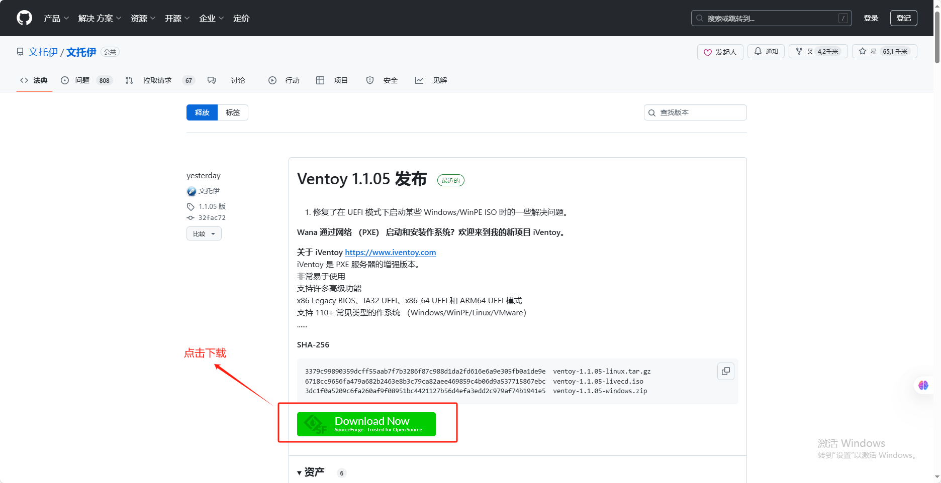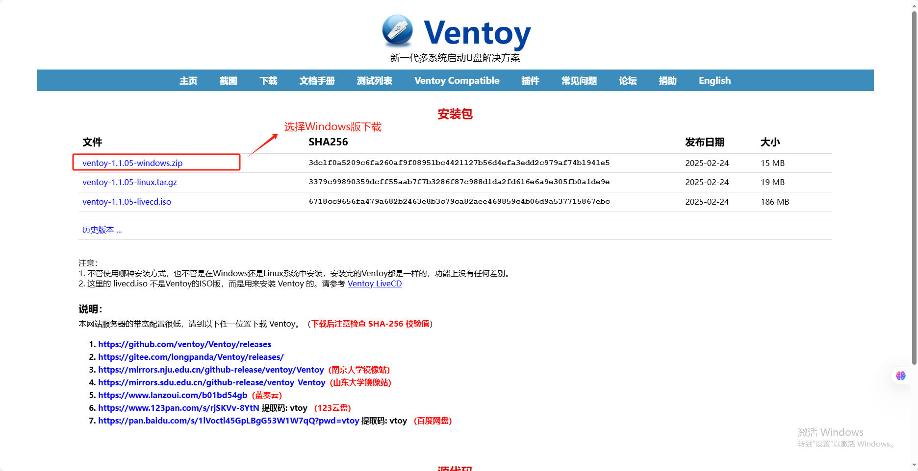 点击“Download.Ventoy”进入Ventoy下载页面,并选择Windows版下载