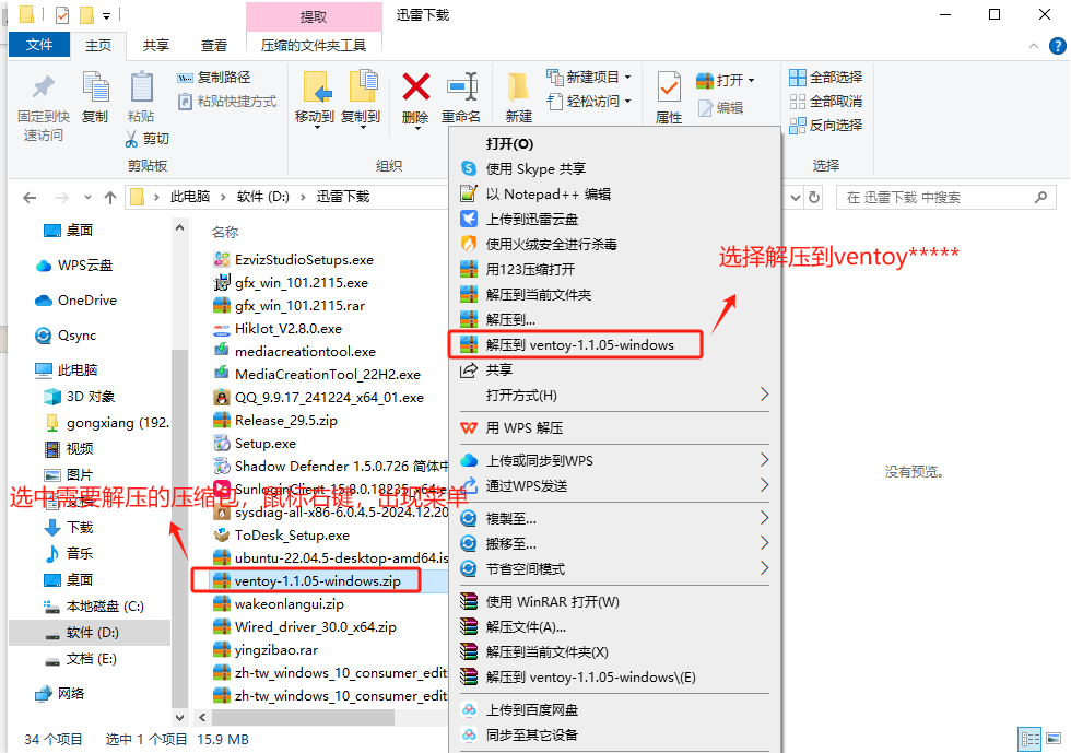 下载成功后,将文件“ventoy-1.1.05-windows.zip”解压