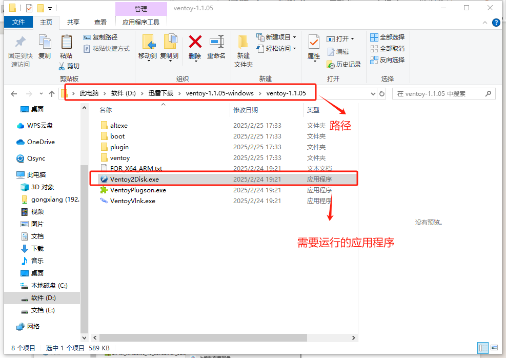 打开ventoy文件夹,找到其中的“Ventoy2Disk.exe”应用程序