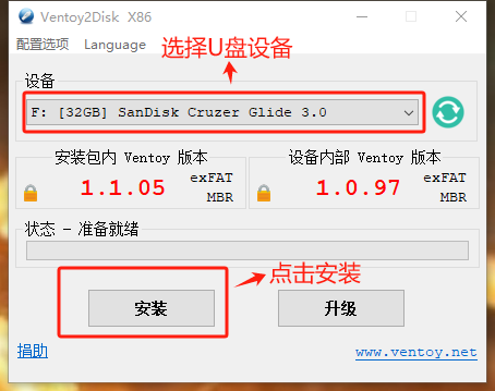 注意:安装Ventoy,U盘会被格式化,请拿一个没有用过或者先把U盘中的数据拷贝出来。