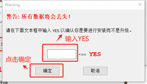 输入“YES”,点击“确定”