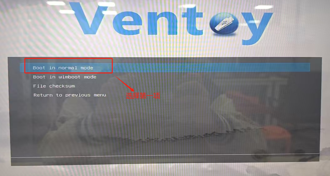 进入系统选择模式安装,选择第一项(正常模式安装),并按键盘上的回车键(Enter)