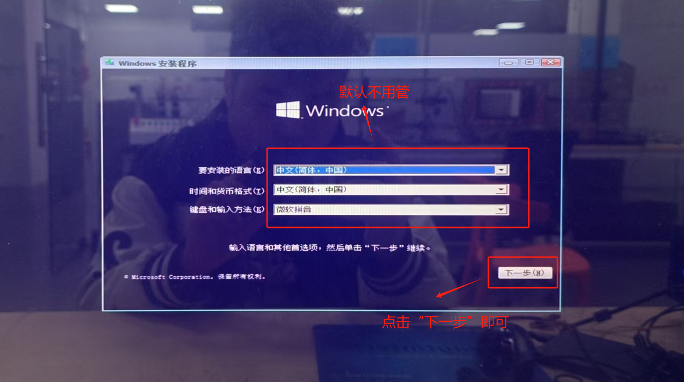 进入系统安装页面,点击“下一步”