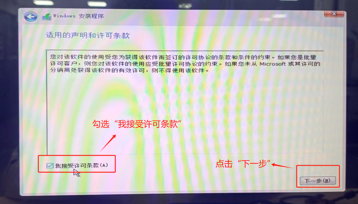 勾选“我接受许可条款”,点击“下一步”