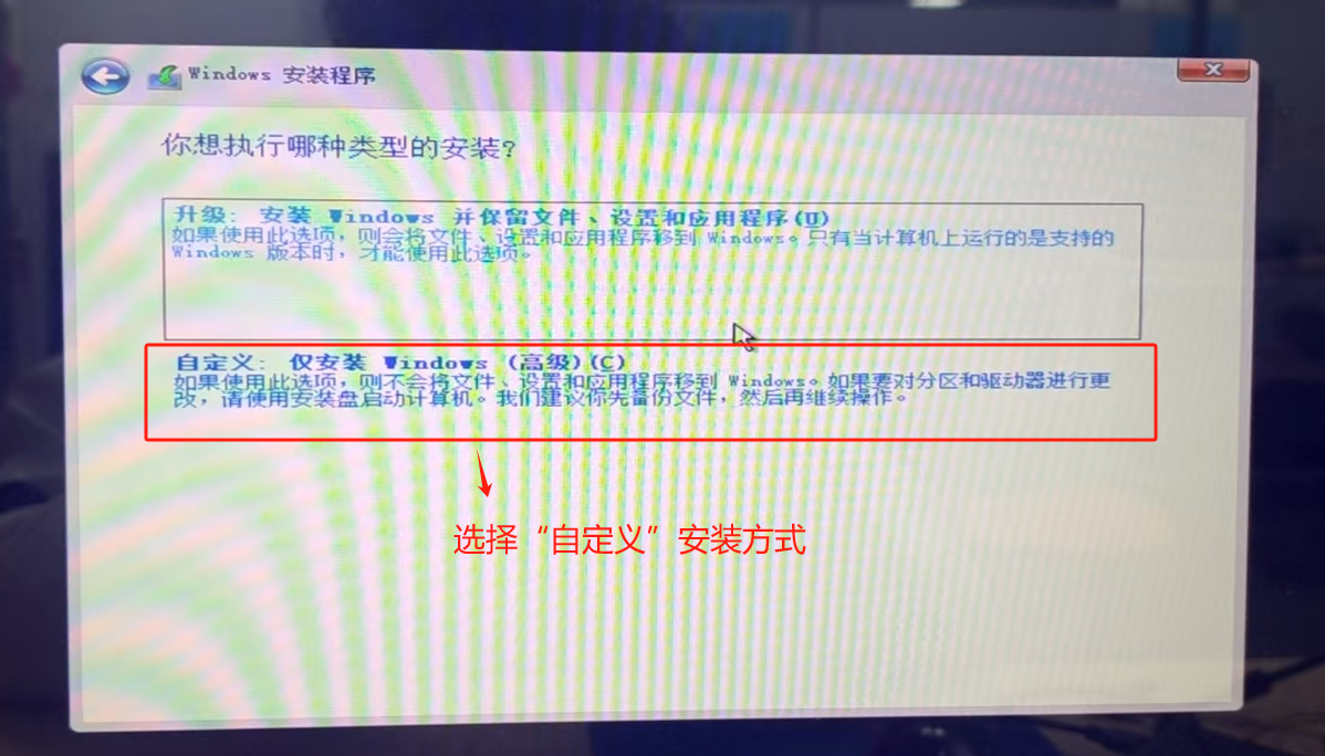 选择“自定义”安装方式