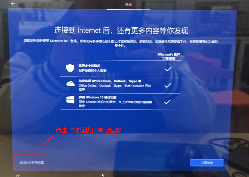 点击“继续执行有限设置”