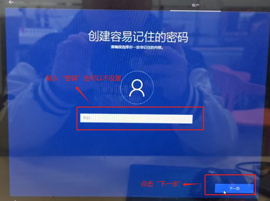 密码可以设置也可以不设置,点击“下一步”