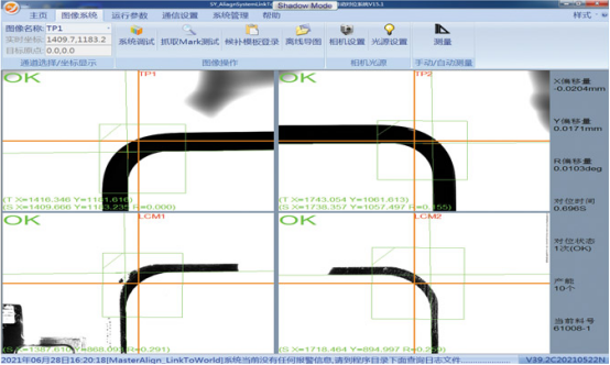 MasterAlign-4C四相机映射对位在工业自动化中应用非常广泛,机构工艺简单易实现,软件操作简单容易上手。此案例中使用软件进行高精度的对位应用,对柔性线路板的对位精度可达到±0.02mm,而工作中稳定保持对位时间在0.4s内完成。