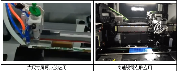 此方案适用领域为:各式电子元件,如电阻、电容、芯片等、集成电路的保护封装、点胶封装、线路板点锡膏、灯具的灌装。视觉引导机械臂、机械手的点胶手机、平板电脑、显示器等各类电子屏幕加工。