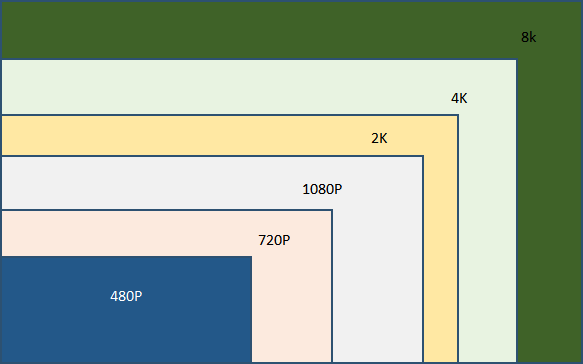 再看看“K”,2K、4K等标识里的“K”,表示的是“视频像素的总列数”。以4K为例,它意味着视频有大约4000列像素数,具体可能是3840列,也可能是4096列。4K分辨率的摄像机,像素数通常是3840×2160或者4096×2160。