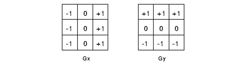Gx = (-1)*f(x-1,y-1) + 0*f(x,y-1) + 1*f(x+1,y-1)