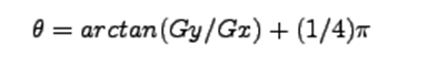 该算子包含两组3x3的矩阵,分别为横向及纵向,将之与图像作平面卷积,即可分别得出横向及纵向的亮度差分近似值。如果以A代表原始图像,Gx及Gy分别代表经横向及纵向边缘检测的图像灰度值,其公式如下: