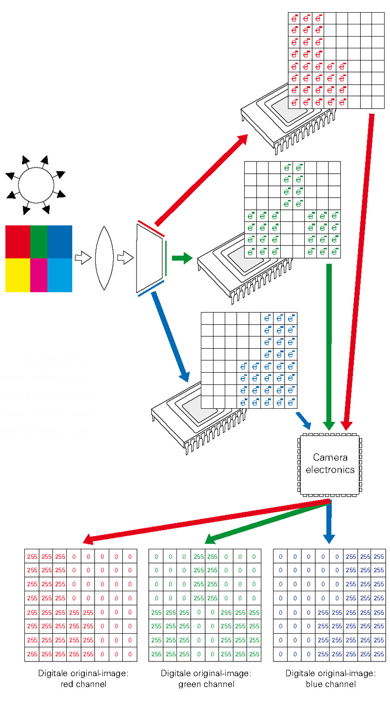 当然,市面上还存在另一种真正的彩色相机,它通过三个独立的图像传感器,分别捕捉红、绿、蓝三种颜色的完整图像,然后将它们精准地合成在一起,形成全彩色的图像。这种相机在色彩还原准确性、动态范围上表现优异,远高于拜耳阵列的彩色相机,并且由于每个颜色通道都是独立全分辨率采集,其清晰度和对比度也非常优秀。但是,其成本和价格也远远高于普通的黑白或者拜耳阵列彩色相机,这限制了它在工业领域的大规模普及。