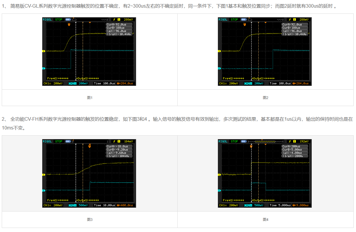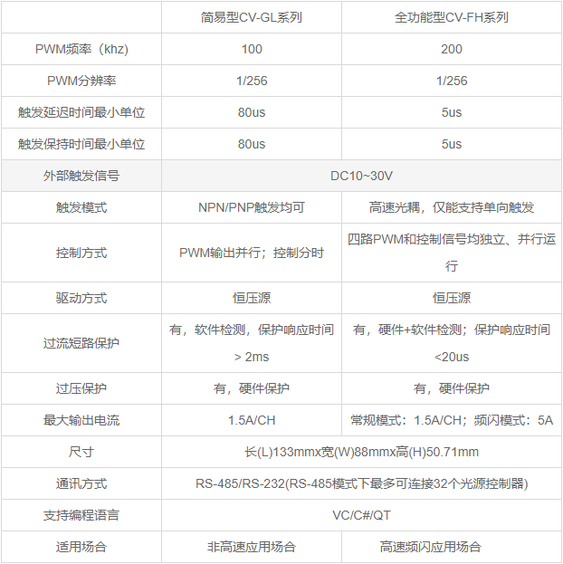 全功能版本CV-FH和简易型版本CV-GL数字光源控制器对比
