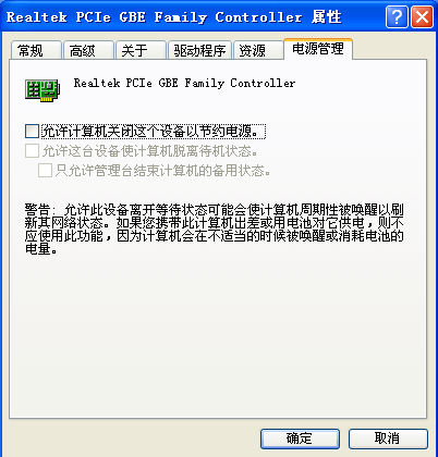 3、切换到电源管理页面,将勾选全部取消,防止电脑进入休眠或低功耗模式;