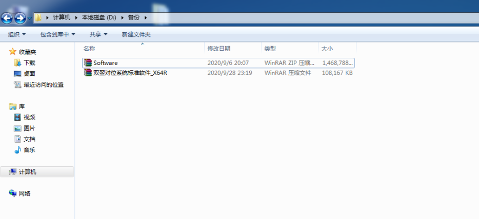 将需要安装的程序文件拷贝到“备份”文件夹下。