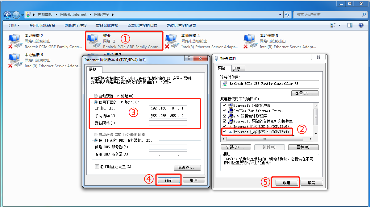 →右键点开“运动控制卡”的网络属性,按以下顺序修改运动控制卡的IP地址