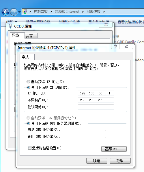 →右键点开“CCD0”的网络属性,修改相机的IP地址如下