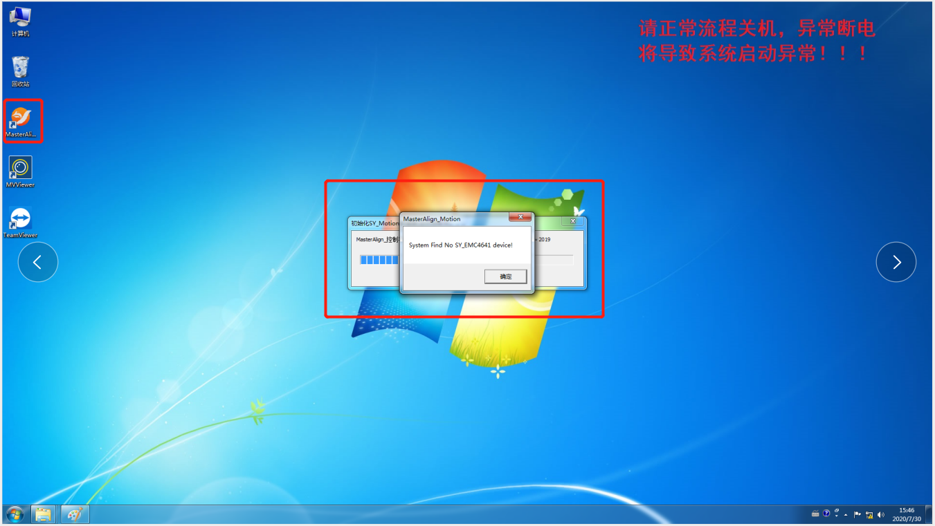 将不常用的桌面图标删除并清空回收站,最终预留“计算机”、“回收站”、“视觉软件”、“MVViewer”、“TeamViewer”等图标。如果有9014运动控制卡,则保留9014运动控制卡Demo的快捷方式。