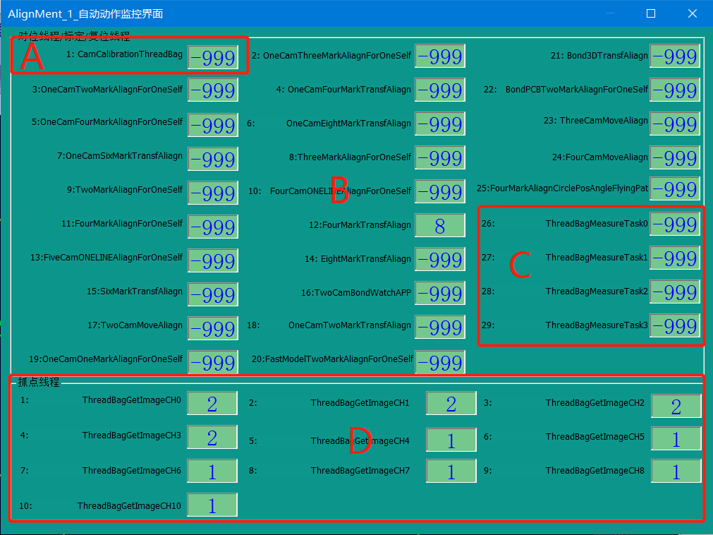 B. 自动运行线程:各类对位应用的运行线程,序号依次为 2-25 状态显示框;