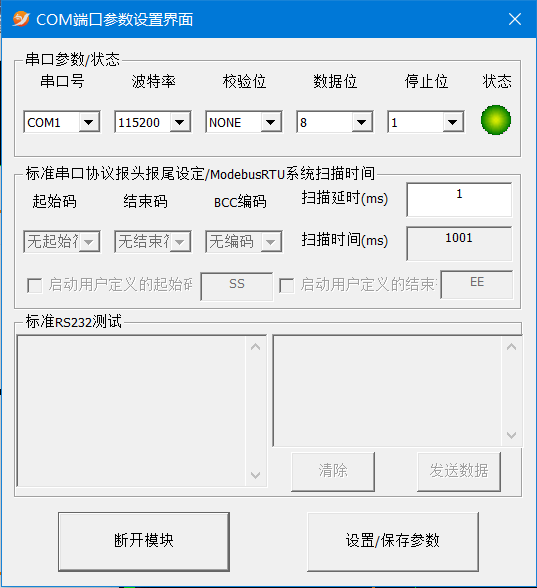 G. 标准串口协议通讯端口设置界面: