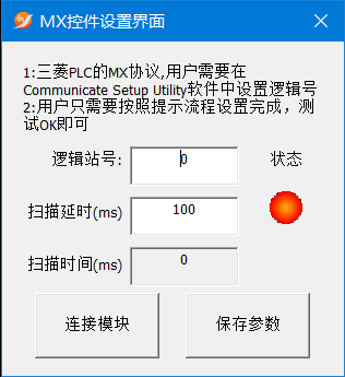 E. 三菱 PLC 的 MX (目前支持 32 位,不支持 64 位系统)通讯端口设置界面: