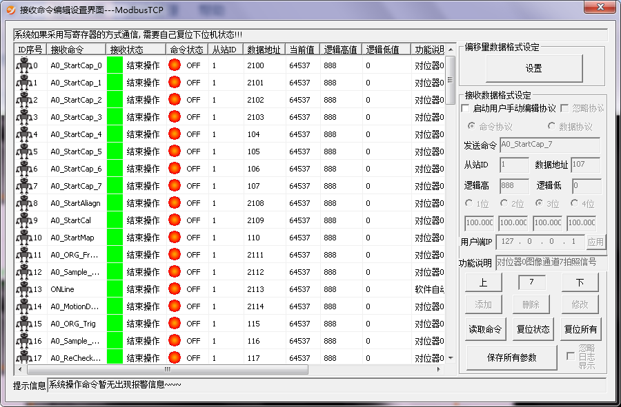 在“通信设置”->点击“接收命令”,弹出接收命令设置界面,如图