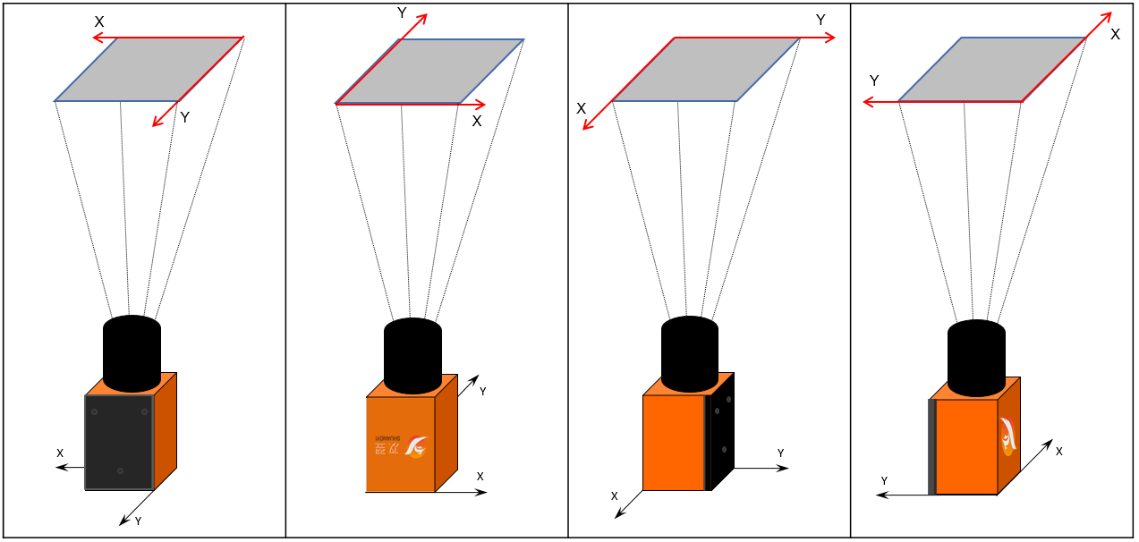 b.对于分离式的运动平台,相机只能观察到 X 或 Y 的运动情况(不需要考虑相机的自旋转角度),则按右侧原则设置:
