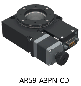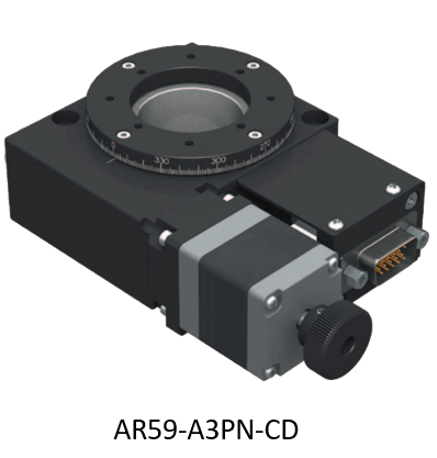 我们选用的旋转平台为AR59-A3PN-CD,其蜗杆/涡轮减速比为1/180,表示蜗杆转1圈,涡轮转1/180圈。如我们选用的电机分辨率为3200Pulse/Rev,那么涡轮转动一圈需要180*3200Pulse=576000Pulse/Rev。该旋转机构角度分辨率则为360度/576000=0.000625度/脉冲