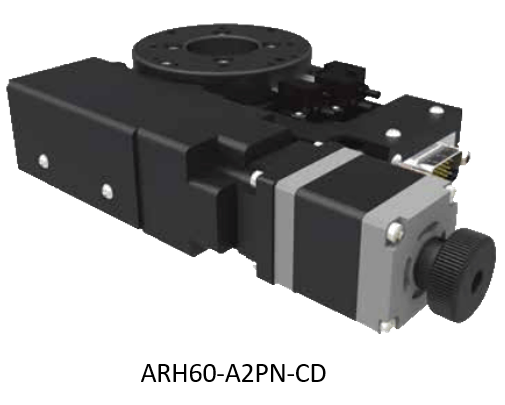我们选用的旋转平台为ARH60-A2PN-CD,其丝杆螺距为1mm,如我们选用的电机分辨率为3200Pulse/Rev,平台的侧推半径为54.5mm,旋转轴比率为0。则旋转角度为: θ=tan(L/R)侧推电机旋转一圈,平台角度摆动:θ=tan(1mm/(54.5mm))=1.0512°