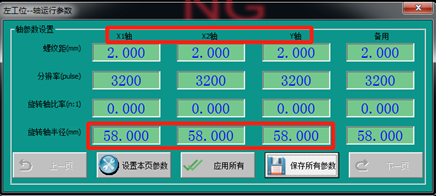 XXY平台的X方向运动,由X1和X2轴同时运动相同距离形成,Y方向运动由Y轴独立运动形成,旋转运动由3轴同时正向或者负向运动相等距离形成;