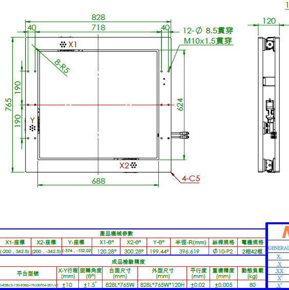 XY轴为常规模组,旋转轴为丝杆侧推方式带动平台旋转。