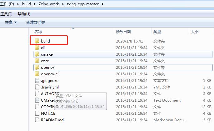 2)进入解压后的zxing-cpp-master目录,新建一个build目录