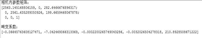获取摄像机的内外参数矩阵,同时也会获得每一幅标定图像的选择和平移矩阵,内参数矩阵和畸变向量可以对之后相机拍摄的图像进行矫正,得到畸变相对很小的图像。