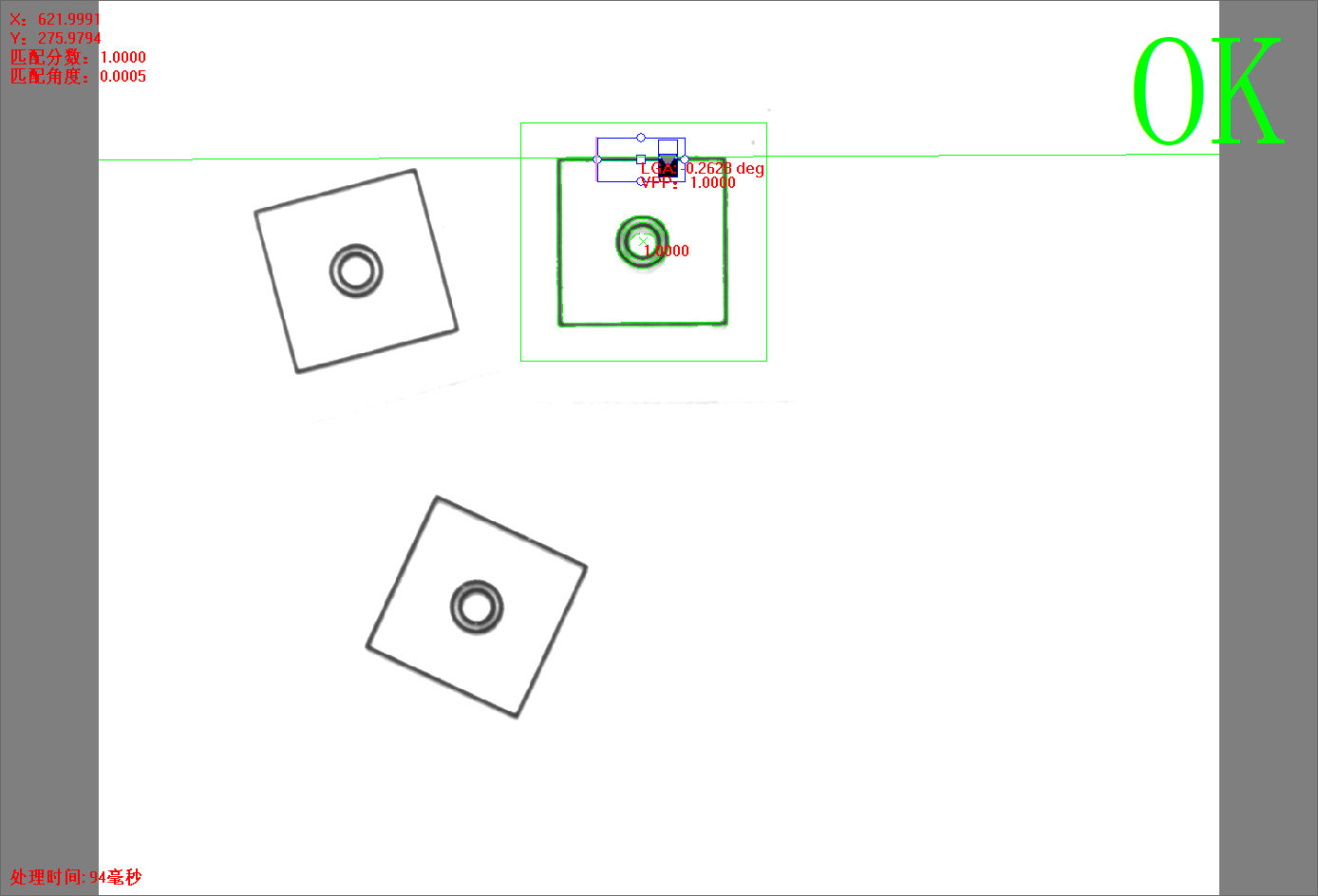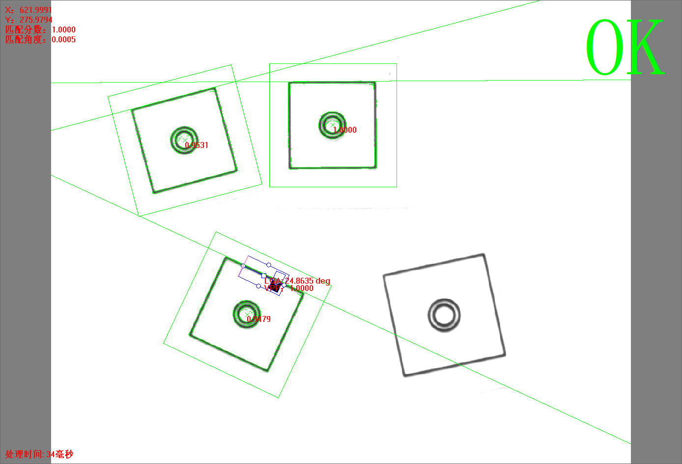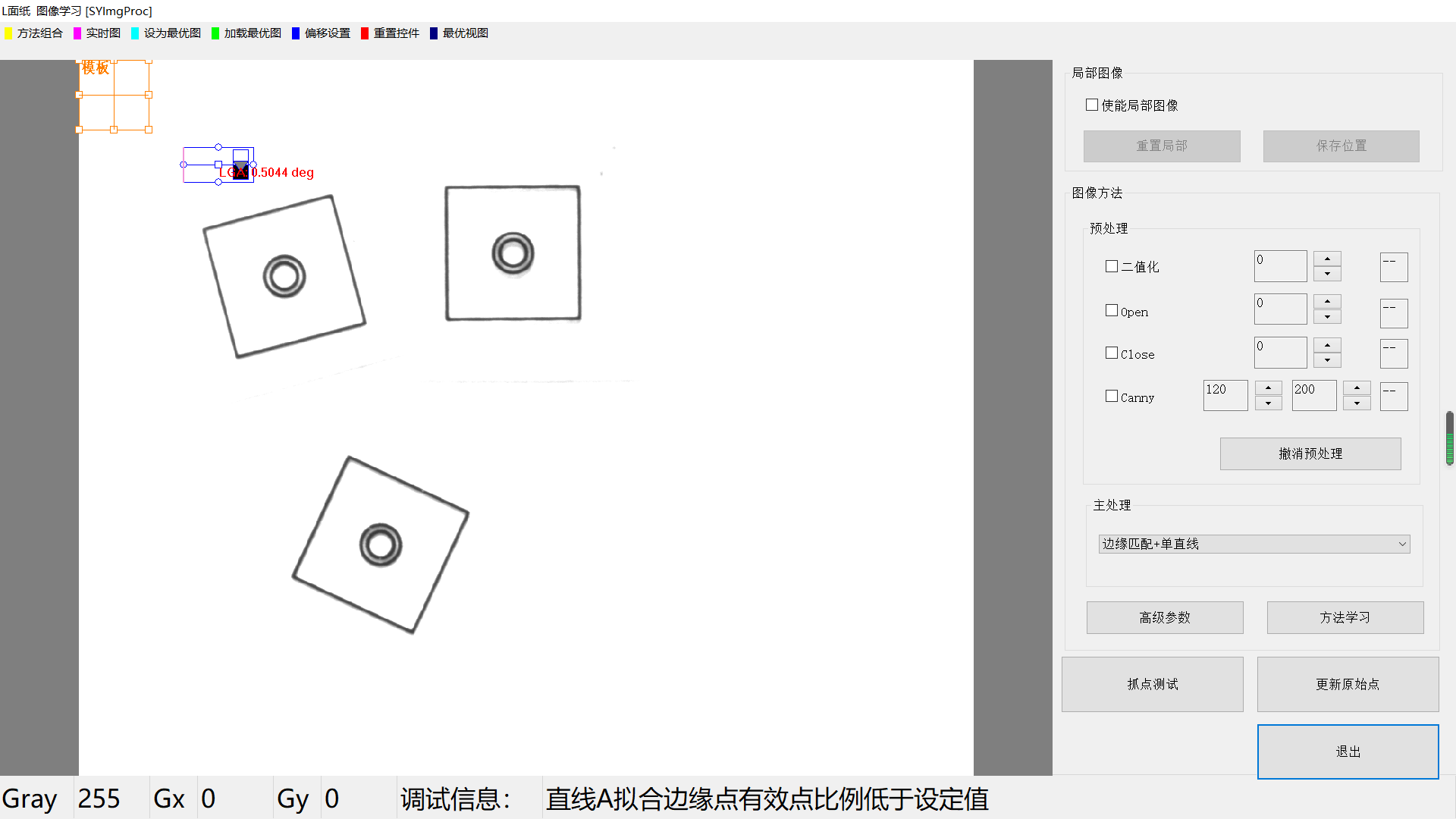 点击【方法学习】后,边缘匹配+单直线方法的所有信息将被保存,并自动进行图像处理,相关的信息将显示。
