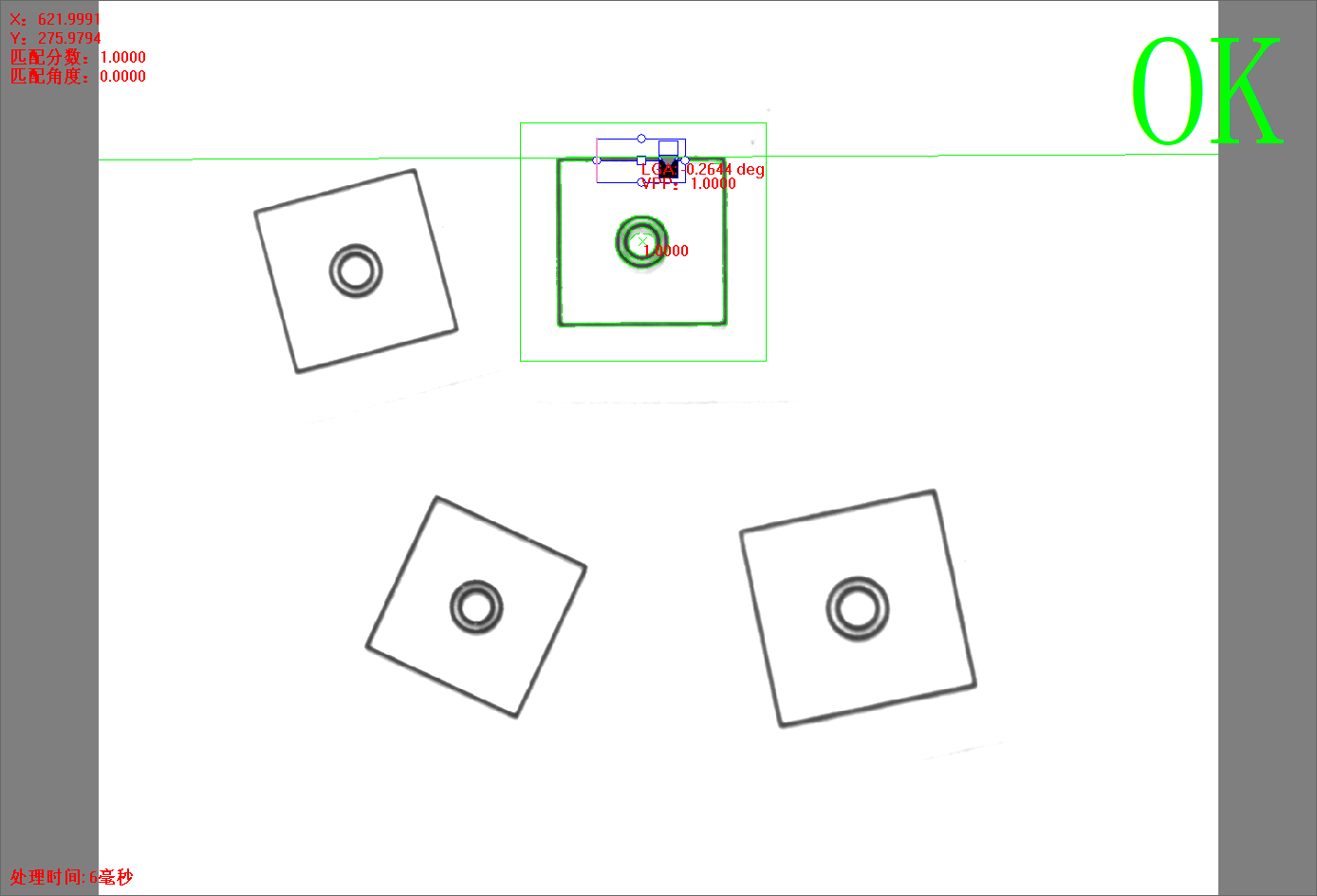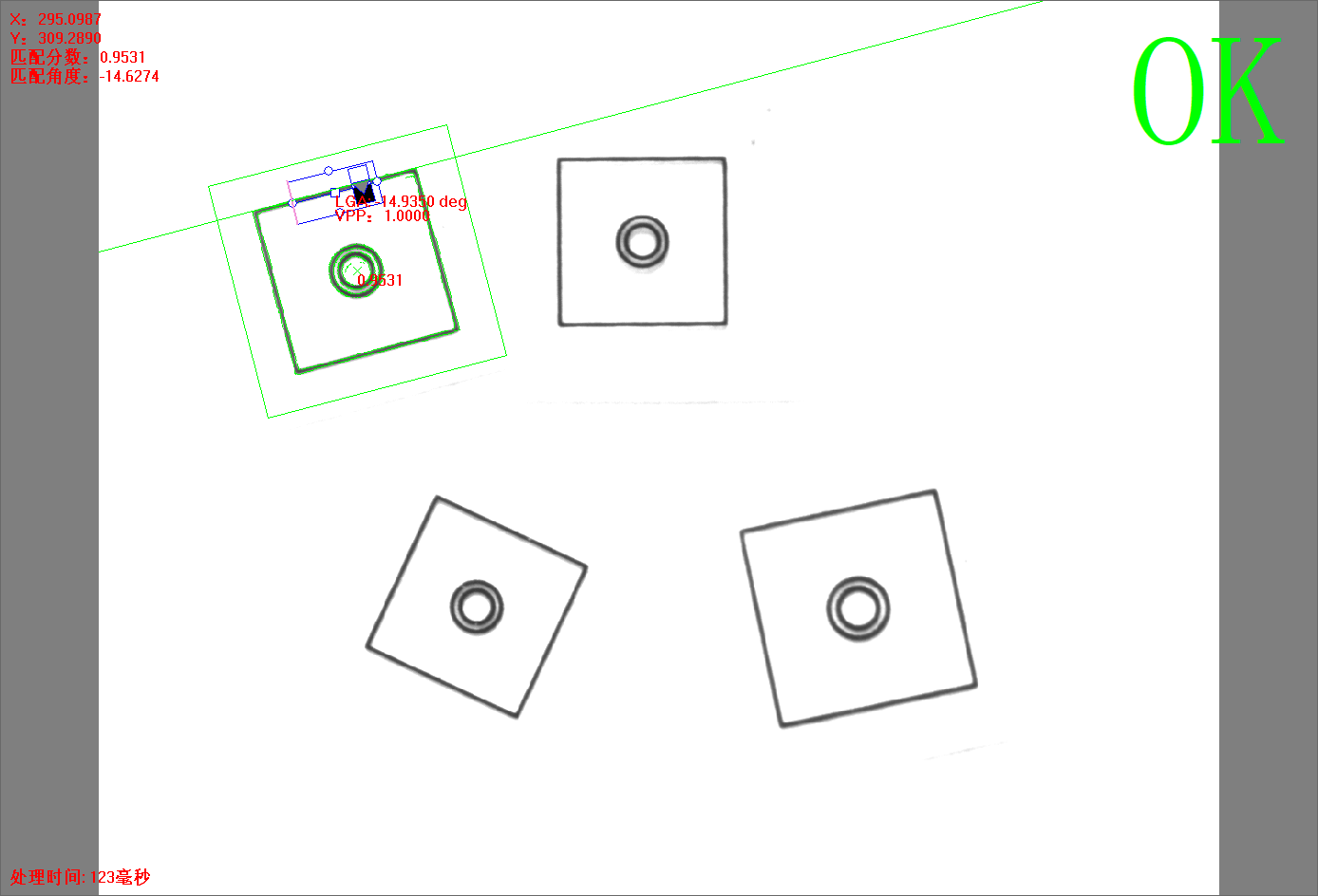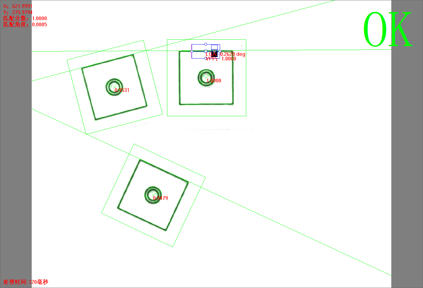 点击【方法学习】后,边缘匹配+单直线方法的所有信息将被保存,并自动进行图像处理,相关的信息将显示。