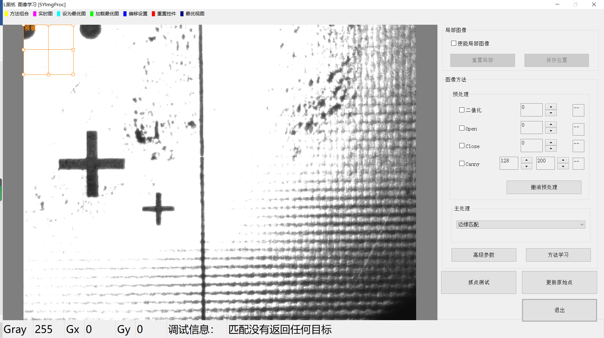 点击【方法学习】,橙色区域的局部图像作为模板被学习及保存,并自动执行图像处理并显示结果。