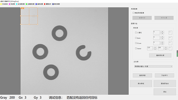 在主处理下拉列表中选择《局部斑点重心--灰度》,在图像范围内将出现一个橙色矩形框。如未见矩形框,可点击图像上方工具栏《重置控件》。