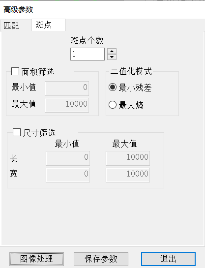 通过设置面积的最小值、最大值,进行斑点筛选。面积在最小值、最大值之间的斑点被保留,之外的斑点被剔除。