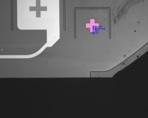 鼠标左键点击图像中需要分析的斑点类型(黑或白),目标将会被着粉红色,并显示斑点的特征信息。