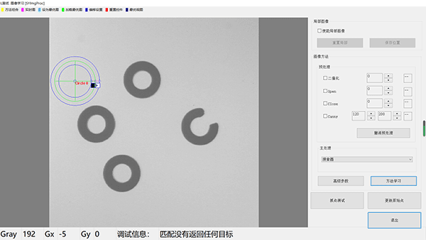 点击【方法学习】后,搜索圆方法的所有信息将被保存,并自动进行图像处理,相关的信息将显示。