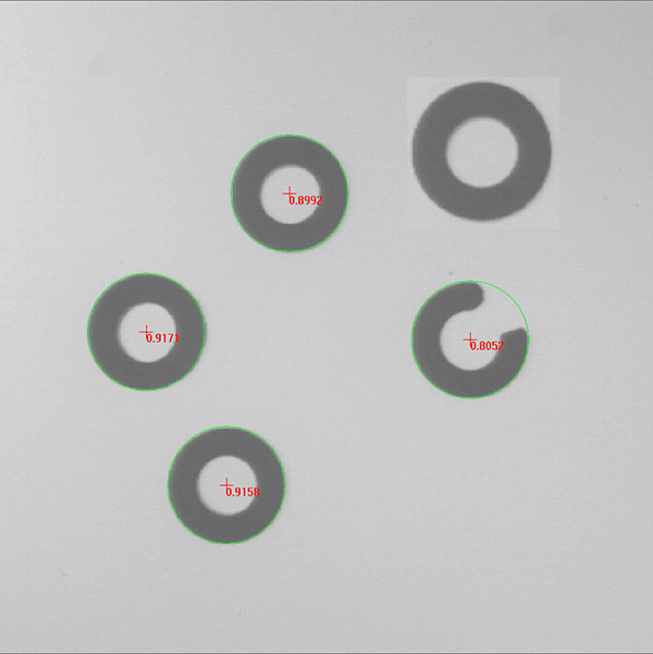 通过圆工具获得目标圆的特征,并以此作为搜索信息,在图像中搜索圆形。