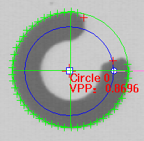该参数表示参与拟合圆的有效点数量占总测量路径数量的百分比。由于边缘残缺或部分边缘点被剔除等情况,使得参与拟合圆的边缘点数目减少,但不能低于该参数值,否则测量失败。下图中,有效点比例VPP:0.8182