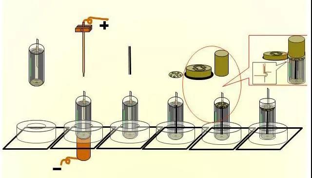 组装后的电池,被给予一定的电流,使电池正负极活性物质被激发,最后使电池具有放电能力的电化学过程称为化成,电池只有经过化成后才能作为电源使用。
