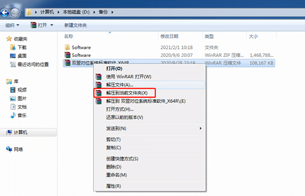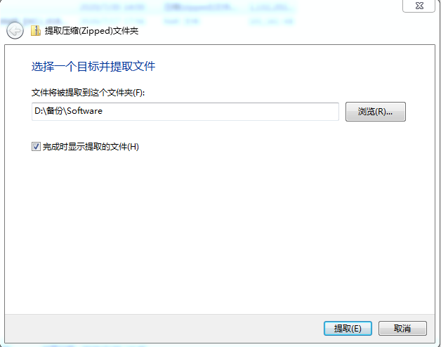 右键单击Software.zip,选择“全部提取(T)...”,弹出的对话框点击“提取”。