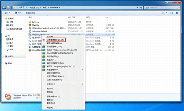 右键单击“3.sogou_pinyin_85b.exe”程序安装包。