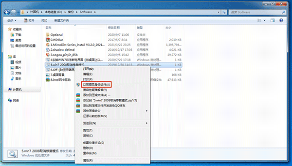 右键单击文件“5.win7 2008取消修复模式.bat”。