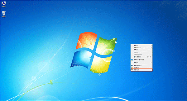 回到桌面,在桌面空白区域右击。点击“个性化”。